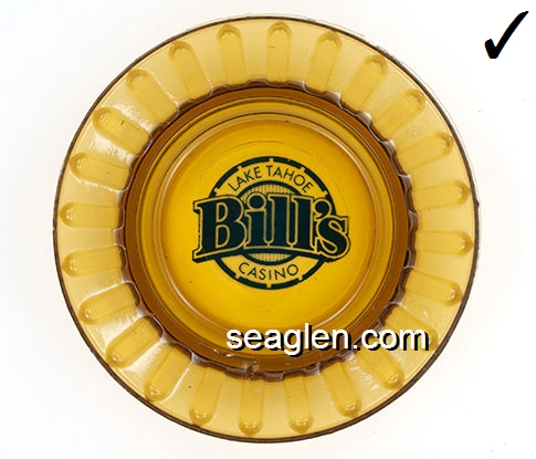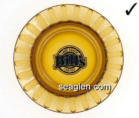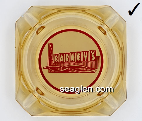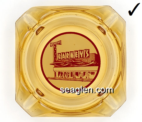 BAR-S1 Barney's Casino Lake Tahoe, NV 3 1/2" Amber Glass Ashtray Red on white imprint: Barney's (Like BAR-18, with different artwork of building) |