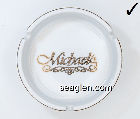 BAR-E1 Barbary Coast Las Vegas, NV 4" White Porcelain Ashtray Gold imprint: Michael's (Barbary Coast gourmet restaurant) |