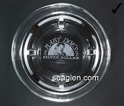 BDO-A1 Baby Doe's Silver Dollar Casino Central City, CO 5" Clear Glass Ashtray White imprint: Baby Doe's Silver Dollar Casino |