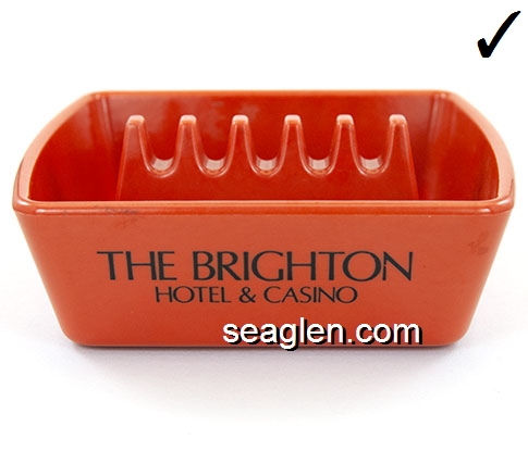 BHC-A1 Brighton Casino Atlantic City, NJ 3 3/4 x 4 1/8" Orange Bakelite Ashtray Black imprint: The Brighton Hotel & Casino |