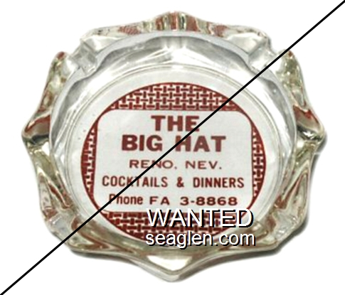 BAN-11 Bank Club (Fallon) Fallon, NV 3 11/16" Clear Glass Ashtray Red on white imprint: Fallon's Finest Club, Bank Club, House of Jackpots, Fallon, Nev. Phone HA 3-6112 |