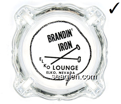 BIE-A2 Branding Iron Lounge Elko, NV 3 11/16" Clear Glass Ashtray Black imprint: Brandin' Iron Lounge, Elko, Nevada |