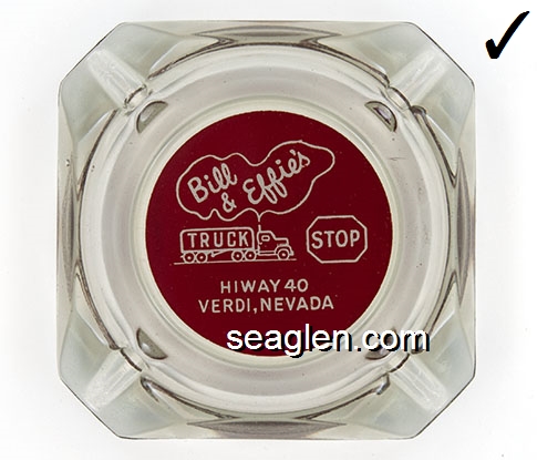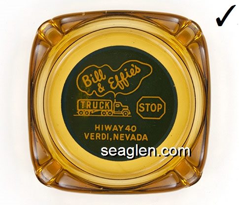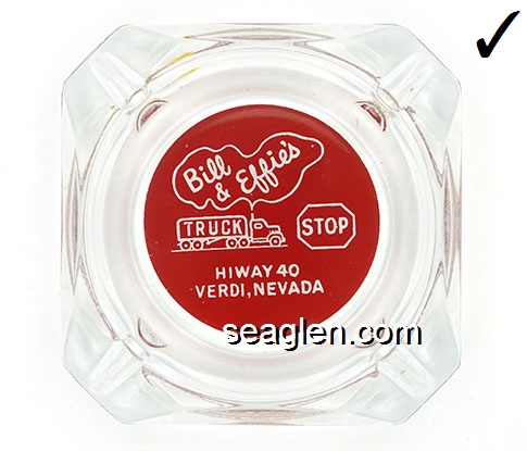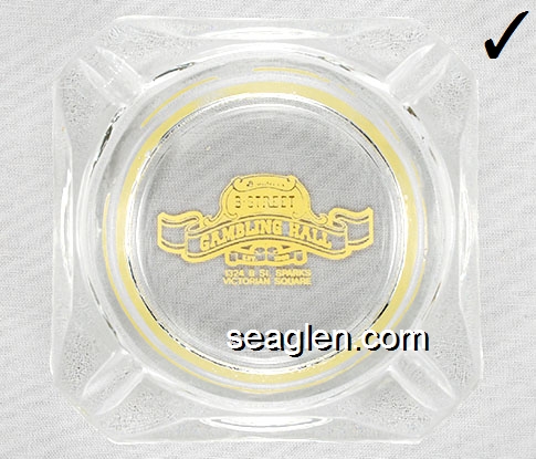 BST-01 B Street Gambling Hall Sparks, NV 3 5/8" Clear Glass Ashtray Yellow imprint: Giudici's B Street Gambling Hall, Est. 1989, 1324 B St. Sparks, Victorian Square (TAIWAN molded under one corner) |