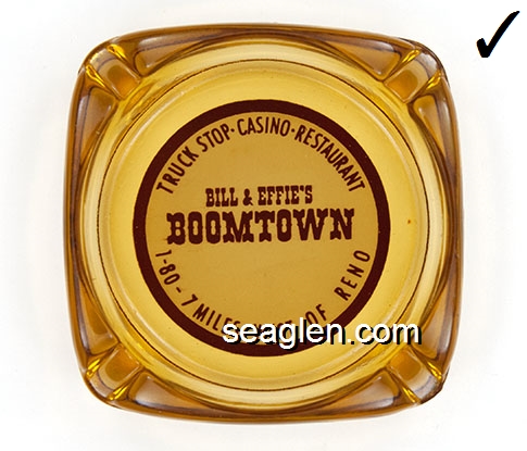 BOT-A1 Boomtown Casino Reno, NV 3 9/16" Amber Glass Ashtray Red imprint: Boomtown, 7 Miles West of Reno |