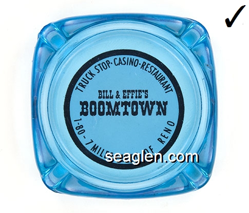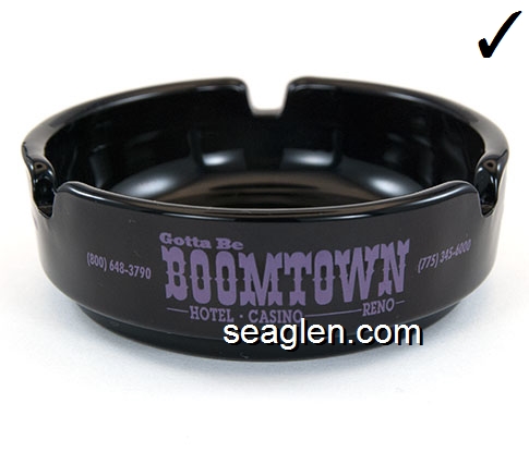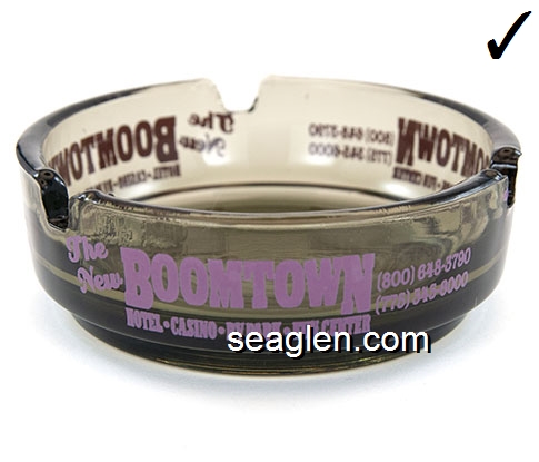 BOT-C3 Boomtown Casino Reno, NV 3 9/16" Smoke Glass Ashtray Purple imprint: The New Boomtown, Hotel - Casino - RV Park - Fun Center, (800) 648-3790 (775) 345-6000 |