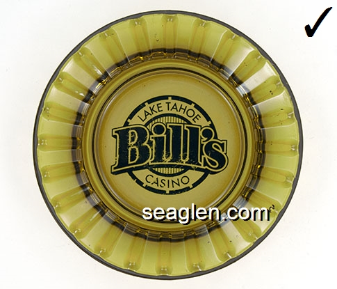 BAR-12 Barney's Casino Lake Tahoe, NV 3 1/2" Green Glass Ashtray Red on white imprint: ''21'' - Pan - Craps - Roulette - Poker - Keno - ''21'' Barney's South Shore Lake Tahoe |