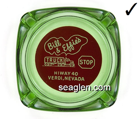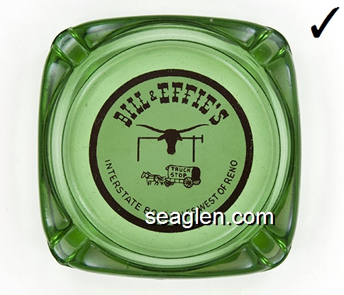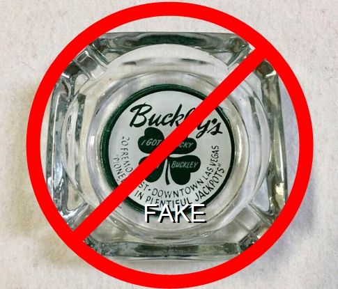 BUC-91 Buckley's Jackpot Club Las Vegas, NV 4" Clear Glass Ashtray Green on white decal imprint: Buckley's; Another presumed 'reproduction' with a decal applied to the bottom of an old ashtray, painted over, and with felt applied to cover up the fakery. (2019) |