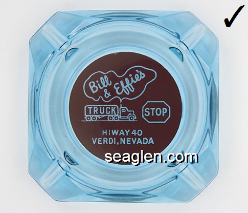 BOC-02 Boon Docks Winnemucca, NV 4 5/16" Blue Glass Ashtray Yellow imprint: Boon Docks, Winnemucca, Nevada |