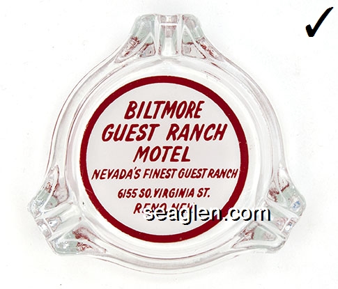 BBR-A1 Buddy Baer's Reno, NV 3 1/4" Clear Glass Ashtray White on red imprint: Buddy Baer's, Reno, Nevada |