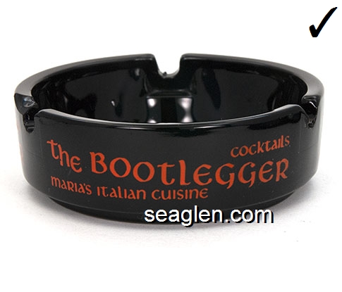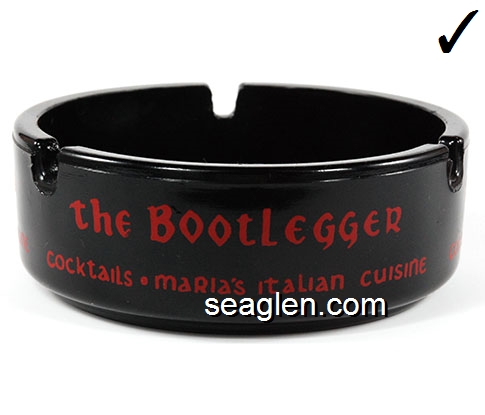 BLM-A1 Bootlegger & Maria's, The Las Vegas, NV 3 1/2" Amethyst Glass Ashtray Red imprint: the Bootlegger, Cocktails - Maria's Italian Cuisine |