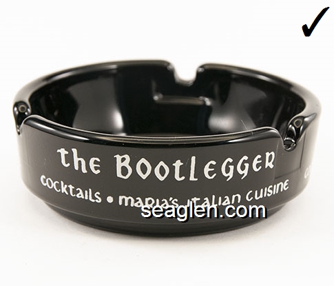BLM-A4 Bootlegger & Maria's, The Las Vegas, NV 3 1/2" Amethyst Glass Ashtray Orange imprint: Cocktails, the Bootlegger, Maria's Italian Cuisine |