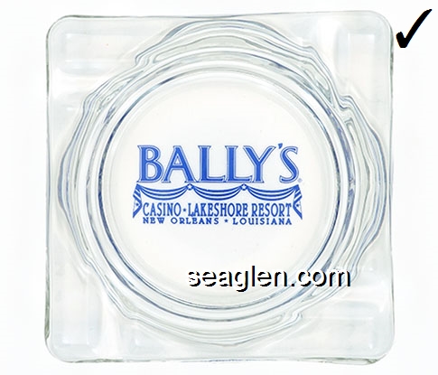 BNO-A1 Bally's Casino Lakeshore Resort New Orleans, LA 4 1/4" Clear Glass Ashtray Blue imprint: Bally's Casino - Lakeshore Resort, New Orleans, Louisiana |