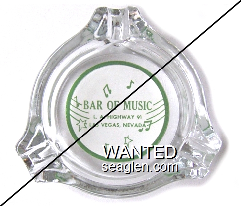BOM-A1 Bar of Music Las Vegas, NV 3 1/2" Clear Glass Ashtray Green on white imprint: Bar of Music, L.A. Highway 91, Las Vegas, Nevada |