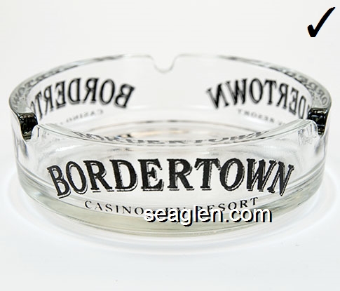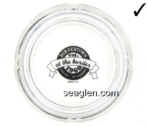 BOR-A1 Bordertown Casino Reno, NV 3 1/2" Clear Glass Ashtray Red on white imprint: Bordertown (Like BOR-04, except Style C) |