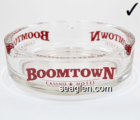 BOT-C5 Boomtown Casino Reno, NV 3 3/4" Clear Glass Ashtray Red imprint: Boomtown Casino * Hotel, Reno, NV |