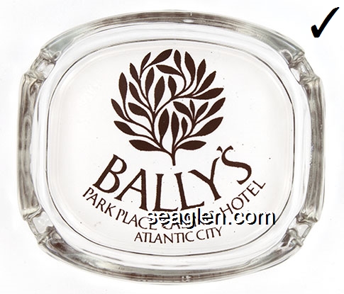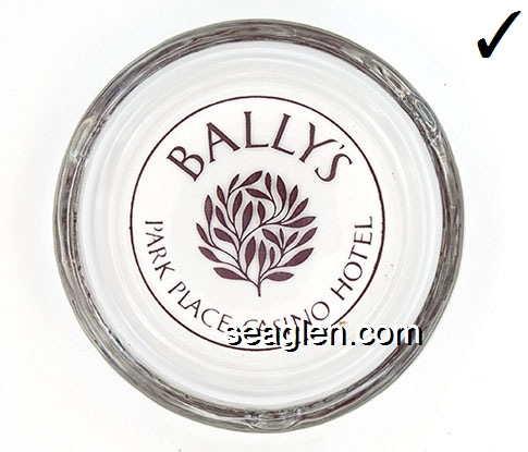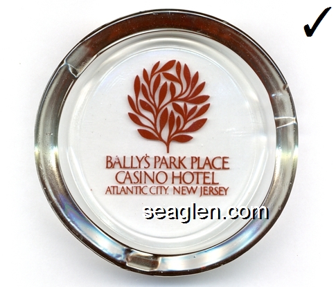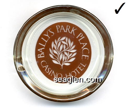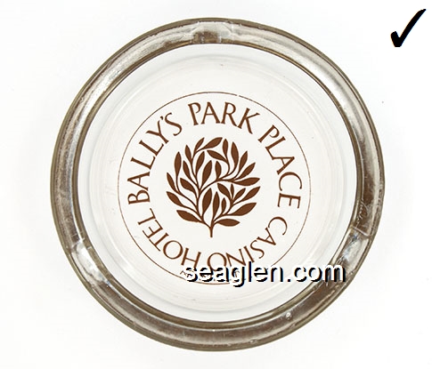 BPP-01 Bally's Park Place Atlantic City, NJ 3 3/4" Clear Glass Ashtray Clear through brown imprint: Bally's Park Place Casino Hotel, Atlantic City |