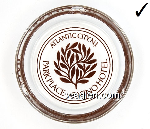 BPP-02 Bally's Park Place Atlantic City, NJ 3 3/4" Clear Glass Ashtray Brown imprint: Atlantic City, N.J., Park Place Casino Hotel |