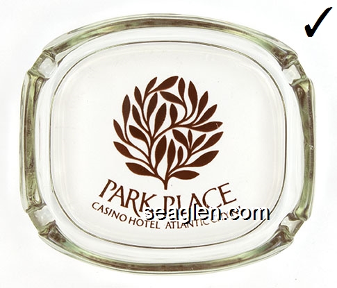 BPP-C1 Bally's Park Place Atlantic City, NJ 3 7/8 x 3 7/16" Clear Glass Ashtray Brown imprint: Park Place, Casino Hotel Atlantic City. N.J. |