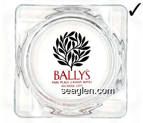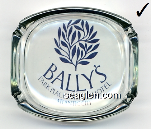 BPP-C3 Bally's Park Place Atlantic City, NJ 3 7/8 x 3 7/16" Clear Glass Ashtray Blue imprint: Bally's, Park Place Casino Hotel, Atlantic City (Like BPP-C2, except blue imprint) |