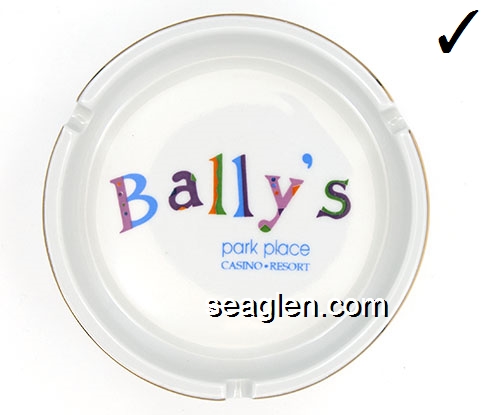 BPP-D1 Bally's Park Place Atlantic City, NJ 4 1/2" White Porcelain Ashtray Multicolor imprint: Bally's Park Place, Casino - Resort |
