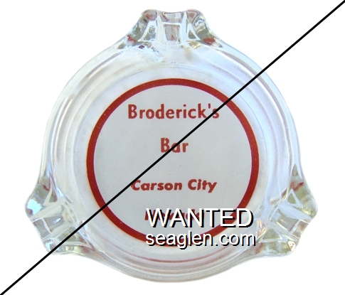 BRD-A1 Broderick's Bar Carson City, NV 3 1/4" Clear Glass Ashtray Red on white imprint: Broderick's Bar, Carson City, Nevada |