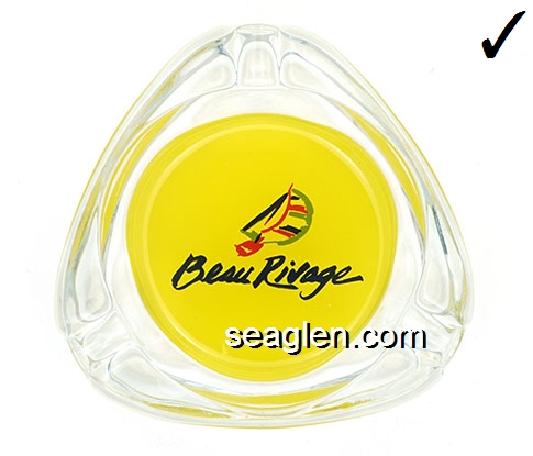 BAH-C2 Bali Hai Motel Las Vegas, NV 3 1/2" Clear Glass Ashtray Green on yellow imprint: Bali Hai, Resort Motel, Las Vegas, 702-734-2141 |