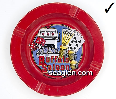 BSD-A1 Buffalo Saloon Deadwood, SD 5 1/4" Red Metal Ashtray Multicolor imprint: Buffalo Saloon, Deadwood, South Dakota |