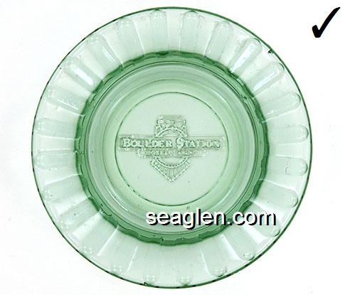 BST-A1 Boulder Station Casino Las Vegas, NV 4 1/2" Green Glass Ashtray Molded imprint: Boulder Station, Hotel - Casino |