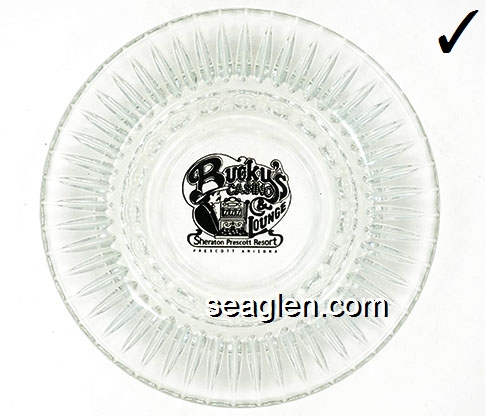 BUP-A1 Bucky's Casino Prescott, AZ 6 1/4" Clear Glass Ashtray Black imprint: Bucky's Casino & Lounge, Sheraton Prescott Resort, Prescott Arizona |