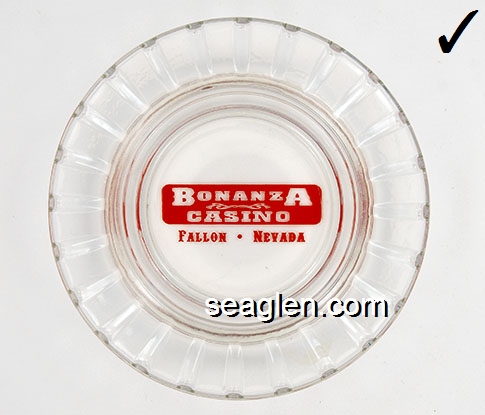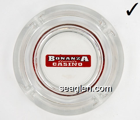 BZR-A1 Bonanza Club (Reno) Reno, NV 3 1/2" Clear Glass Ashtray Red on white imprint: The Bonanza, Reno, Nevada |