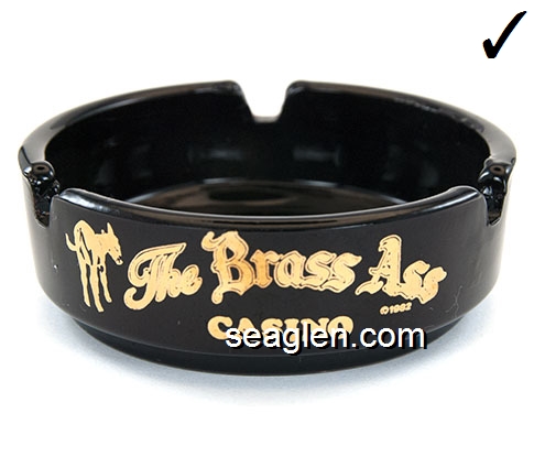 TBA-A1 Brass Ass Casino Cripple Creek, CO 3 5/8" Amethyst Glass Ashtray Gold imprint: The Brass Ass Casino (Like TBA-01, except amethyst glass) |