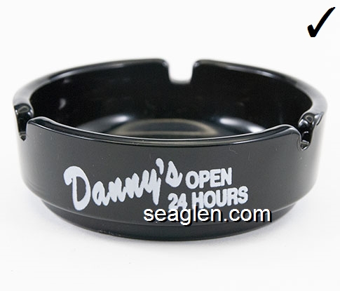 DAN-D2 Danny's Slot Country Las Vegas, NV 3 9/16" Amethyst Glass Ashtray White imprint: Danny's Open 24 Hours, Cocktails Good Food, Desert Inn at Boulder Hwy Las Vegas (Like DAN-D1, except with different, compressed font) |