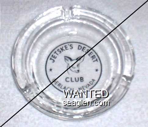DCG-A1 Desert Club - Gerlach Gerlach, NV 4" Clear Glass Ashtray Black imprint: Jetske's Desert Club, Gerlach - Nevada |