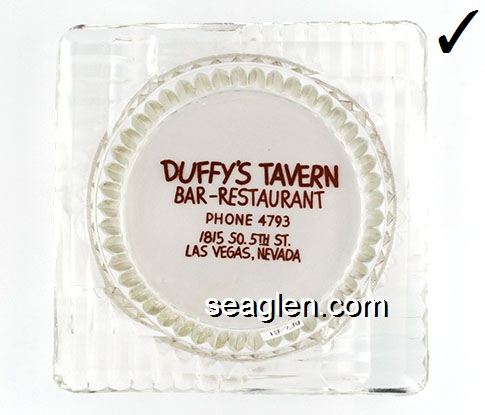 DFL-B1 Duffy's Lounge Las Vegas, NV 4 1/2" Clear Glass Ashtray Brown imprint: Duffy's Tavern, Bar - Restaurant, Phone 4793, 1815 So. 5th St., Las Vegas, Nevada |