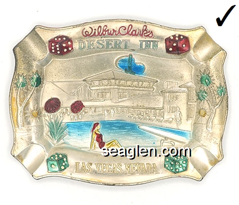 DIC-03 Desert Inn Las Vegas, NV 4 3/4 x 3 1/2" Silver Metal Ashtray Multicolor imprint: Wilber Clark's Desert Inn, Las Vegas, Nevada |