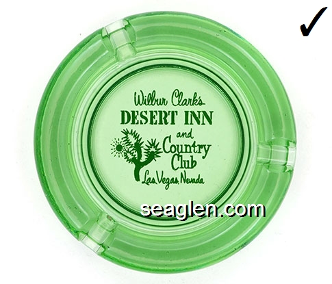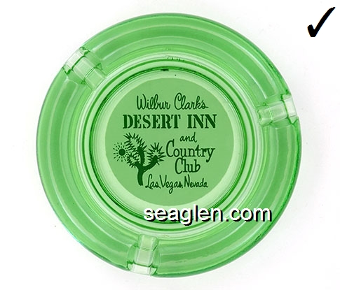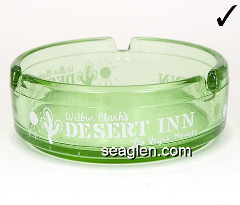 DIC-08 Desert Inn Las Vegas, NV 3 7/16" Green Glass Ashtray White imprint: Wilbur Clark's Desert Inn, Las Vegas, Nevada |