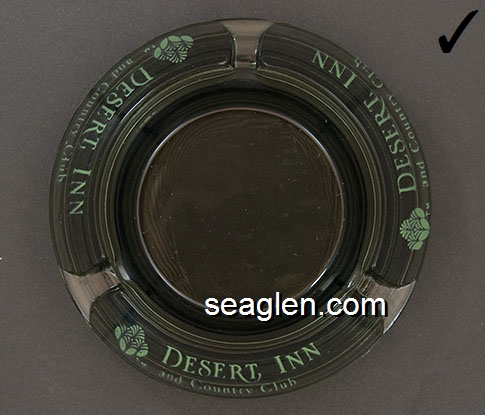 DIC-A1 Desert Inn Las Vegas, NV 4 1/8" Smoke Glass Ashtray White and green imprint: Desert Inn and Country Club, Las Vegas |