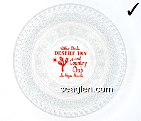 DIC-D1 Desert Inn Las Vegas, NV 4 7/8" Clear Glass Ashtray Red imprint: Wilbur Clark's Desert Inn and Country Club, Las Vegas, Nevada |