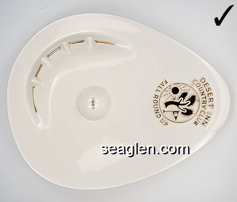 DIC-P1 Desert Inn Las Vegas, NV 8 x 10" White Porcelain Ashtray Gold imprint: Desert Inn Country Club, Fall Round Up, 1967 |
