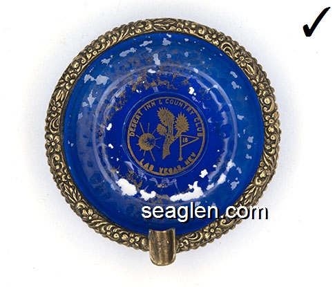 DIC-T1 Desert Inn Las Vegas, NV 3" Blue Glass Ashtray Gold imprint: Desert Inn & Country Club, Las Vegas, Nev. |