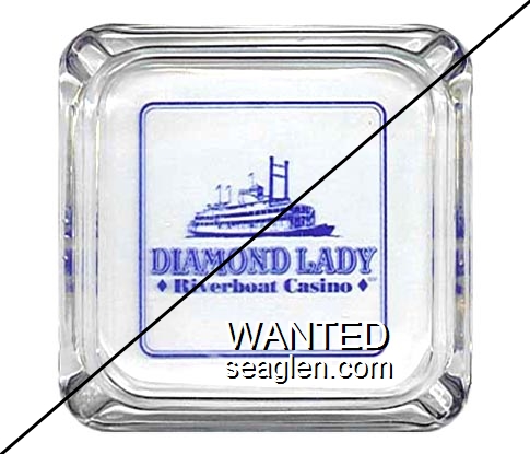 DIL-01 Diamond Lady Riverboat Casino Bettendorf, IA 3 5/8" Clear Glass Ashtray Blue imprint: Diamond Lady Riverboat Casino |