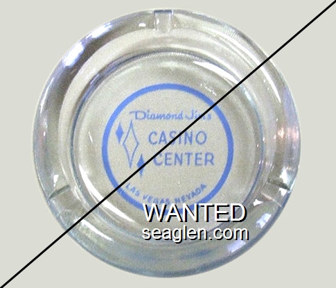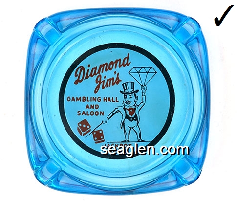DJV-B1 Diamond Jim's Casino Las Vegas, NV 4 1/2" Clear Glass Ashtray Blue on white imprint: Diamond Jim's, Casino Center, Las Vegas, Nevada |