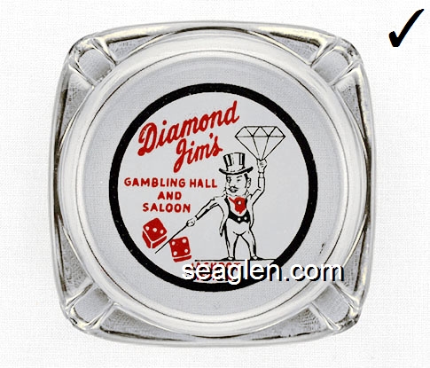 DJV-A1 Diamond Jim's Casino Las Vegas, NV 4 1/2" Smoke Glass Ashtray Red imprint: Diamond Jim's, Casino Center, Las Vegas - Nevada |