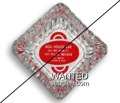 DOG-A1 Dog House Las Vegas, NV 4 1/2" Clear Glass Ashtray Red on white imprint: Dog House Bar, 1815 No. Main St., Las Vegas, Nevada, Bill Bailey, Owner & Mgr |