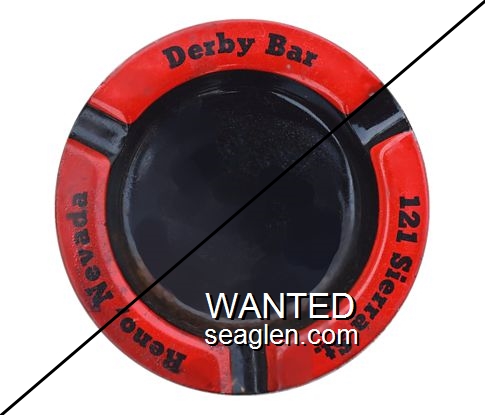 DRB-A1 Derby Bar Reno, NV 4" Red and black Metal Ashtray Black on red imprint: Derby Bar, 121 Sierra St., Reno, Nevada |
