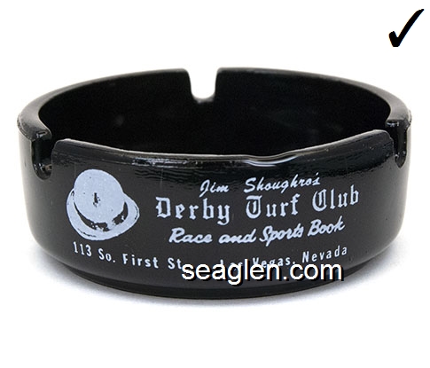 DTC-A2 Derby Turf Club Las Vegas, NV 3 1/2" Amethyst Glass Ashtray White imprint: Jim Shoughro's Derby Turf Club, Race and Sports Book, 113 So. First St., Las Vegas, Nevada |