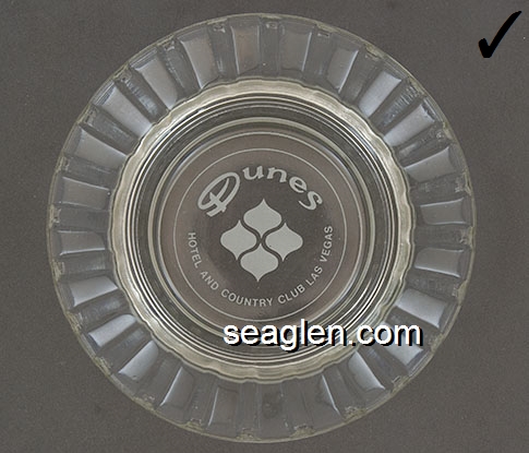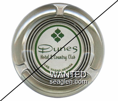 DUN-09 Dunes Hotel & Country Club Las Vegas, NV 4" Smoke Glass Ashtray Green imprint: Dunes Hotel & Country Club, Las Vegas, Nevada |