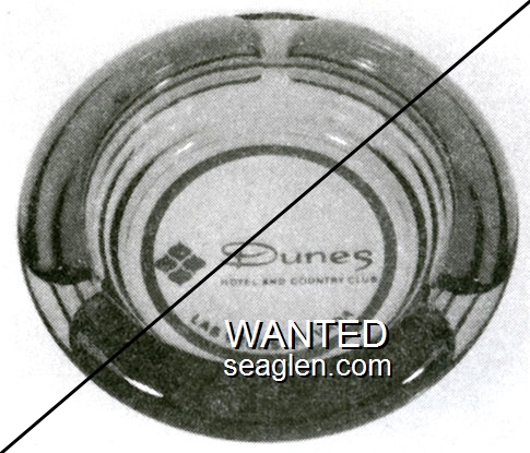 DUN-G1 Dunes Hotel & Country Club Las Vegas, NV 4" Clear Glass Ashtray Black on red imprint: The Dunes Hotel, Miracle in the Desert, Las Vegas, Nevada (Like DUN-04, except clear glass) |