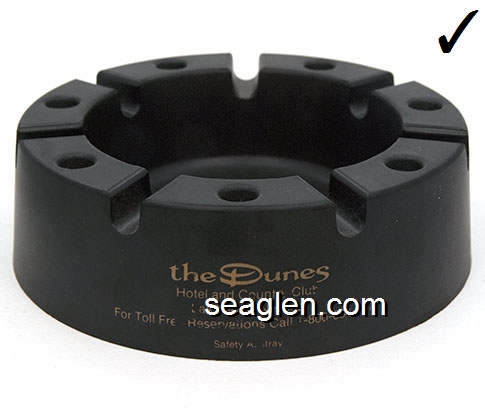 DUN-H1 Dunes Hotel & Country Club Las Vegas, NV 5" Brown Plastic Ashtray Gold imprint: the Dunes, Hotel and Country Club, Las Vegas, Nevada, For Toll Free Reservations Call 1-800-634-6971, Safety Ashtray |