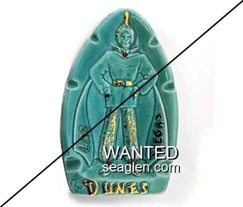 DUN-M1 Dunes Hotel & Country Club Las Vegas, NV 5 x 8 1/4" Turquoise blue Porcelain Ashtray Gold raised imprint: The Dunes, Las Vegas |